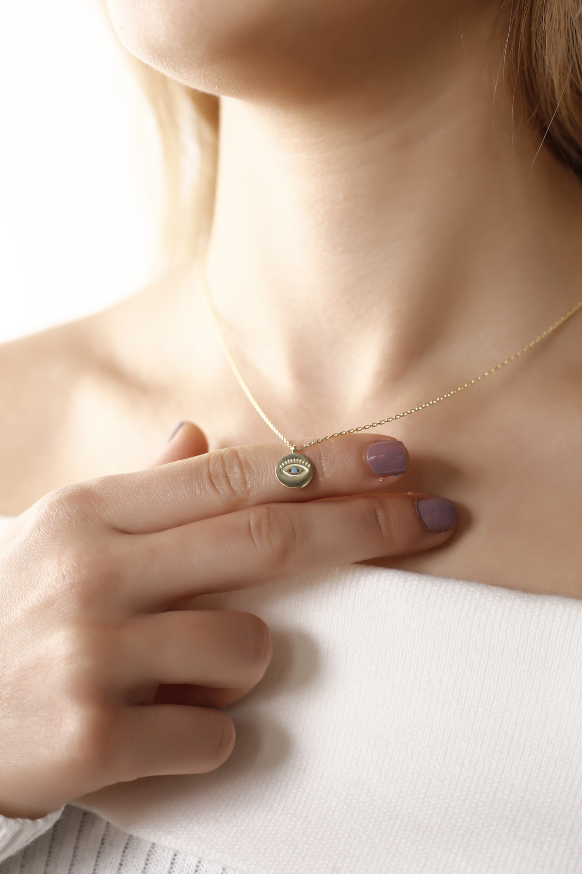 Altın Kaplama Yuvarlak Firuze Gözlü Gümüş Kolye