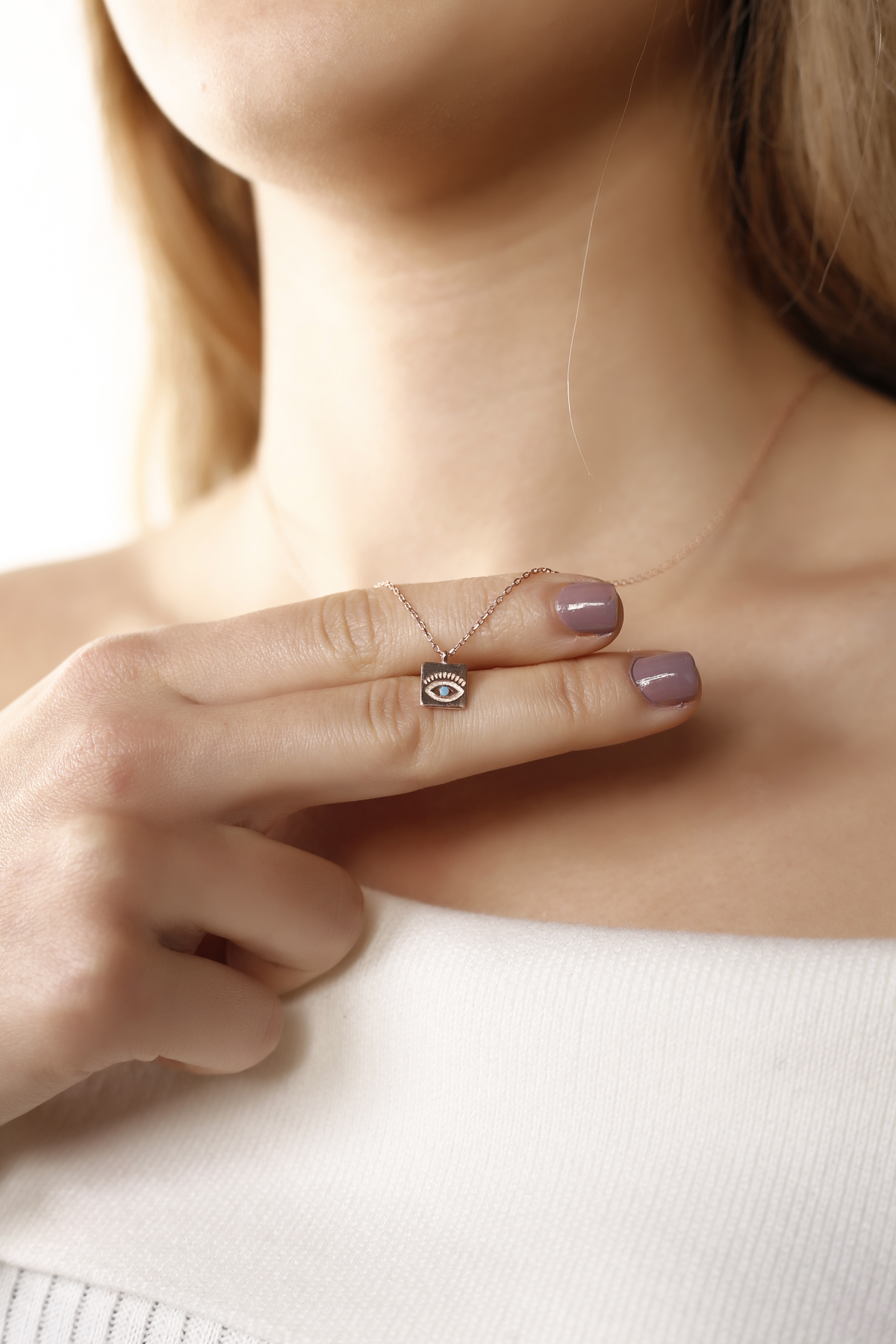 Rose Kare Firuze Gözlü Gümüş Kolye